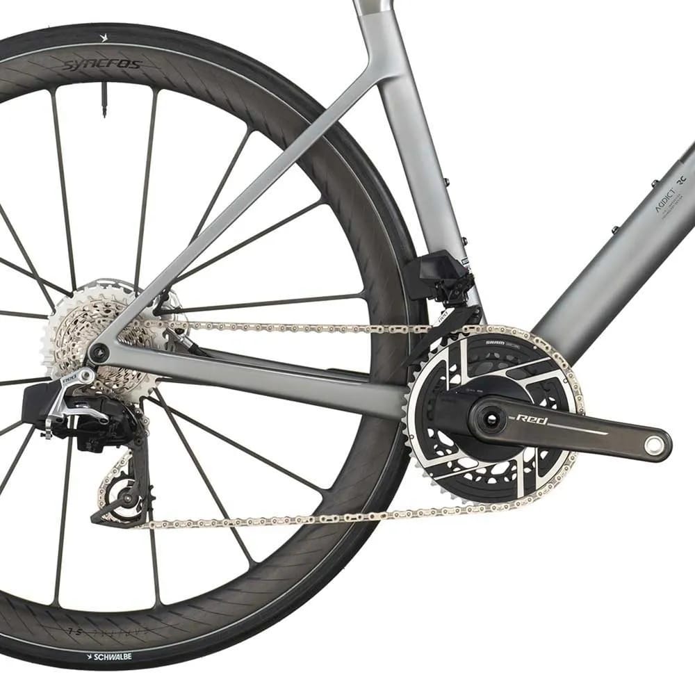 The new Addict RC’s geometry has undergone a comprehensive redesign to align seamlessly with our modern specifications for this bike, accommodating wider tires while enhancing overall handling consistency across all sizes. Whether you’re a professional rider or chasing after the local KOMs/QOMs on the weekends, the new Addict RC promises heightened agility and responsiveness, ensuring an unparalleled riding experience.