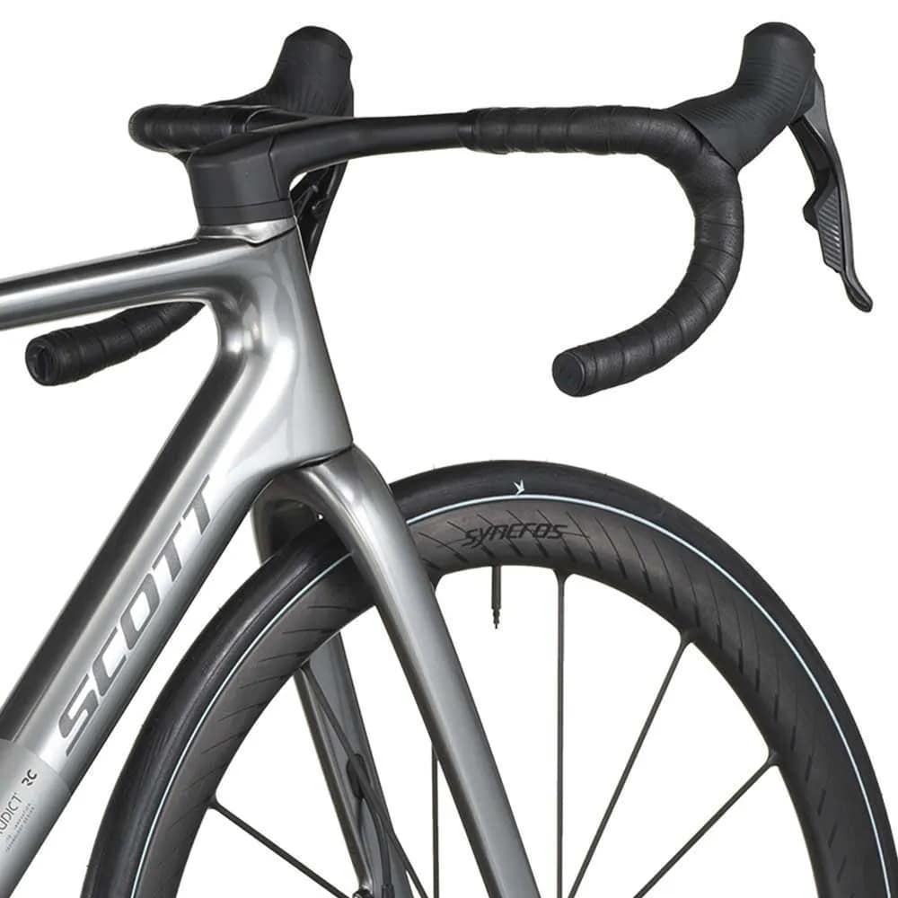 The introduction of the all-new Addict RC set the stage for the development of a new innovative Syncros cockpit. With modern road groupsets featuring brake levers that flare out, our goal was to create an aerodynamic handlebar, achieved by incorporating a subtle flare on the drops to seamlessly blend with the brake levers, resulting in enhanced watt savings but also improved handling. Additionally, we improved cable routing and revamped the clamping system to shed additional grams. We offer multiple cockpit configurations, featuring 8 stem lengths from 70mm to 140mm paired with 5 bar widths from 360mm to 420mm, ensuring an optimal fit for every rider.